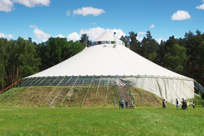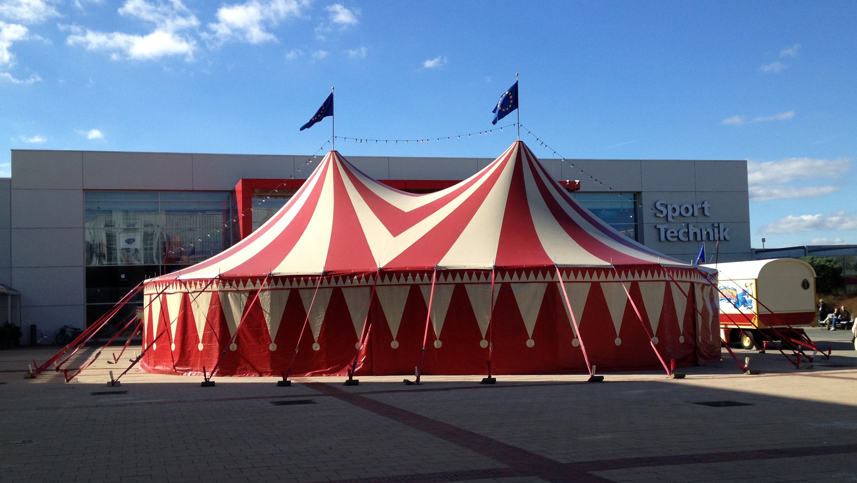 Representativas carpas de circo de todas las formas y tamaños. Cálculos estáticos y planificación de las carpas, incluido el libro de construcción certificado por el TÜV (construcciones portátiles).
